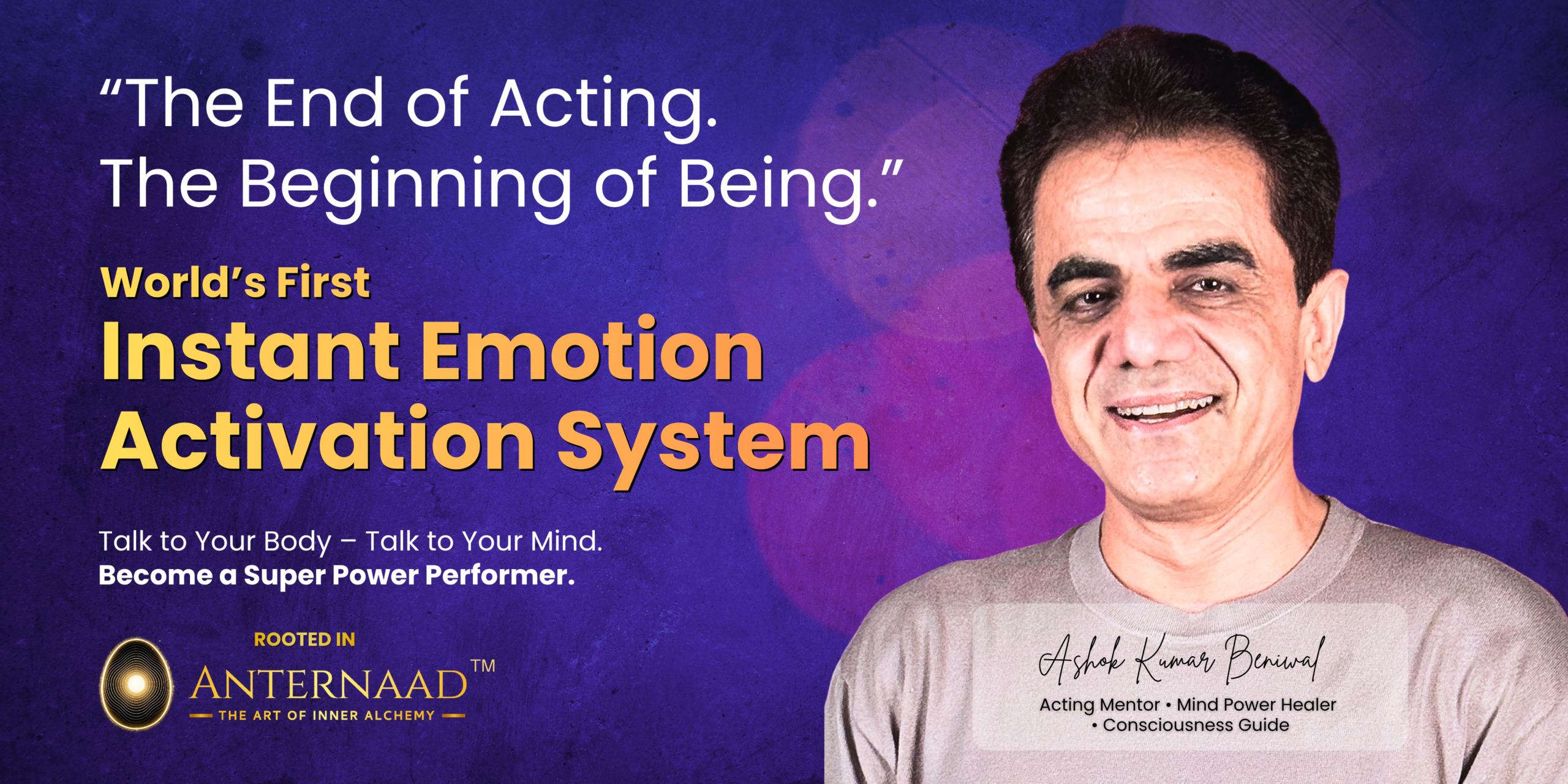 Today, Ashok’s work finds expression through two distinct yet deeply connected paths: ANTERNAAD™️, dedicated to inner transformation and conscious presence; and Super Power Actor™️, dedicated to performance intelligence, embodiment, and truthful expression.